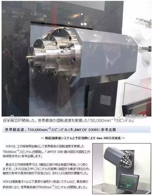 先来一个世界最高精度机床主轴。来自日本精工。 日本精工将自主设计的极微量油气润滑系统与定预压切换结构相结合。成功实现世界最高dmn值的工作机械(车床 加工中心)用主轴 。