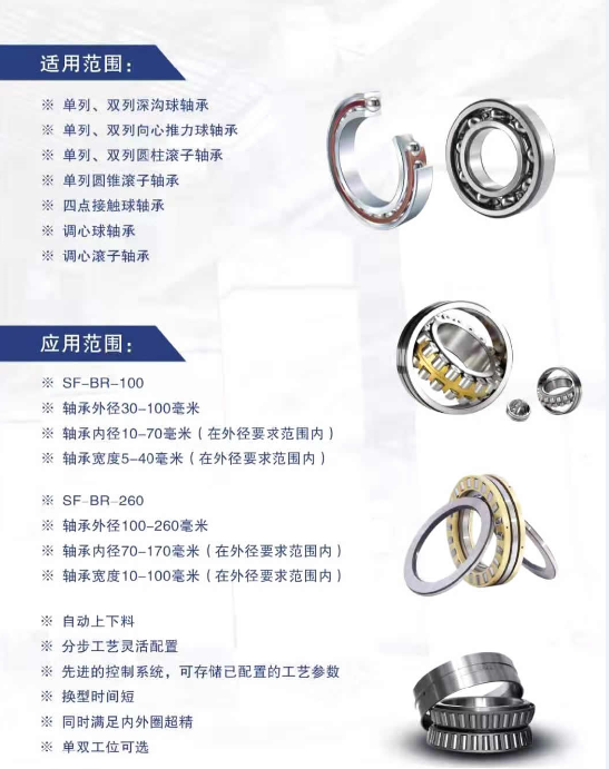 驭准超精最新推出应用于轴承行业的SF-BR型超精机,满足各行业改善沟道和滚道的粗糙度、圆度,提升轴承能力和使用寿命。